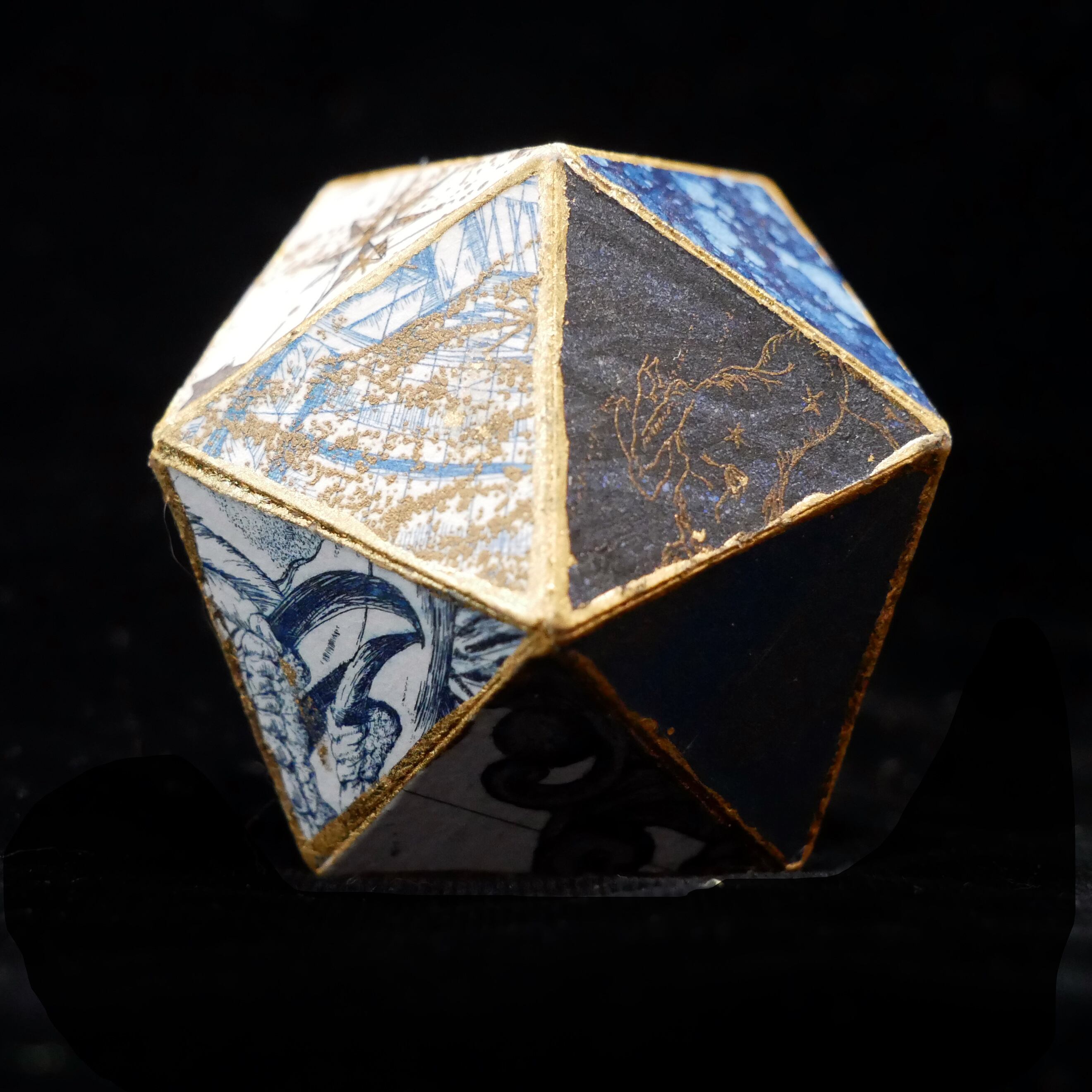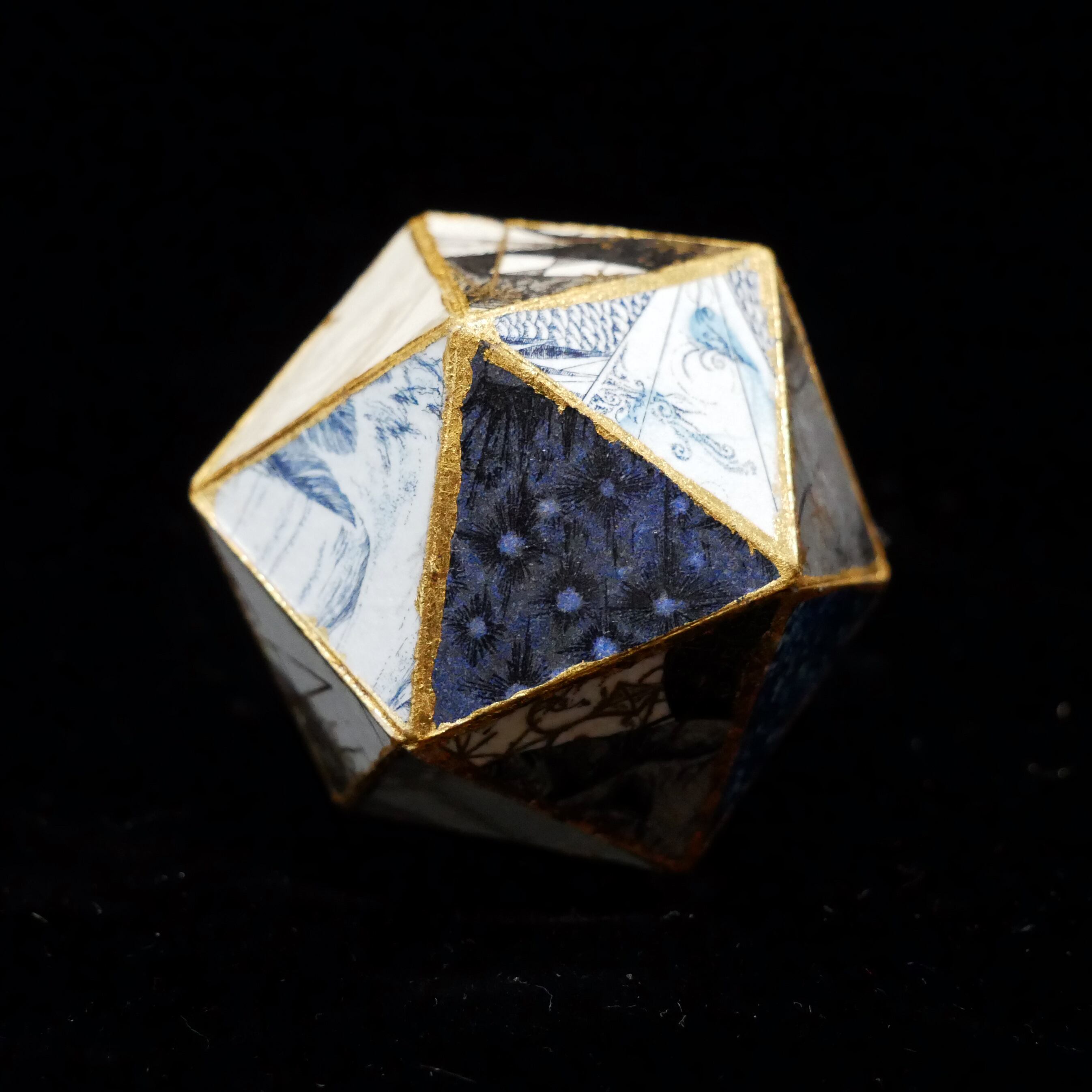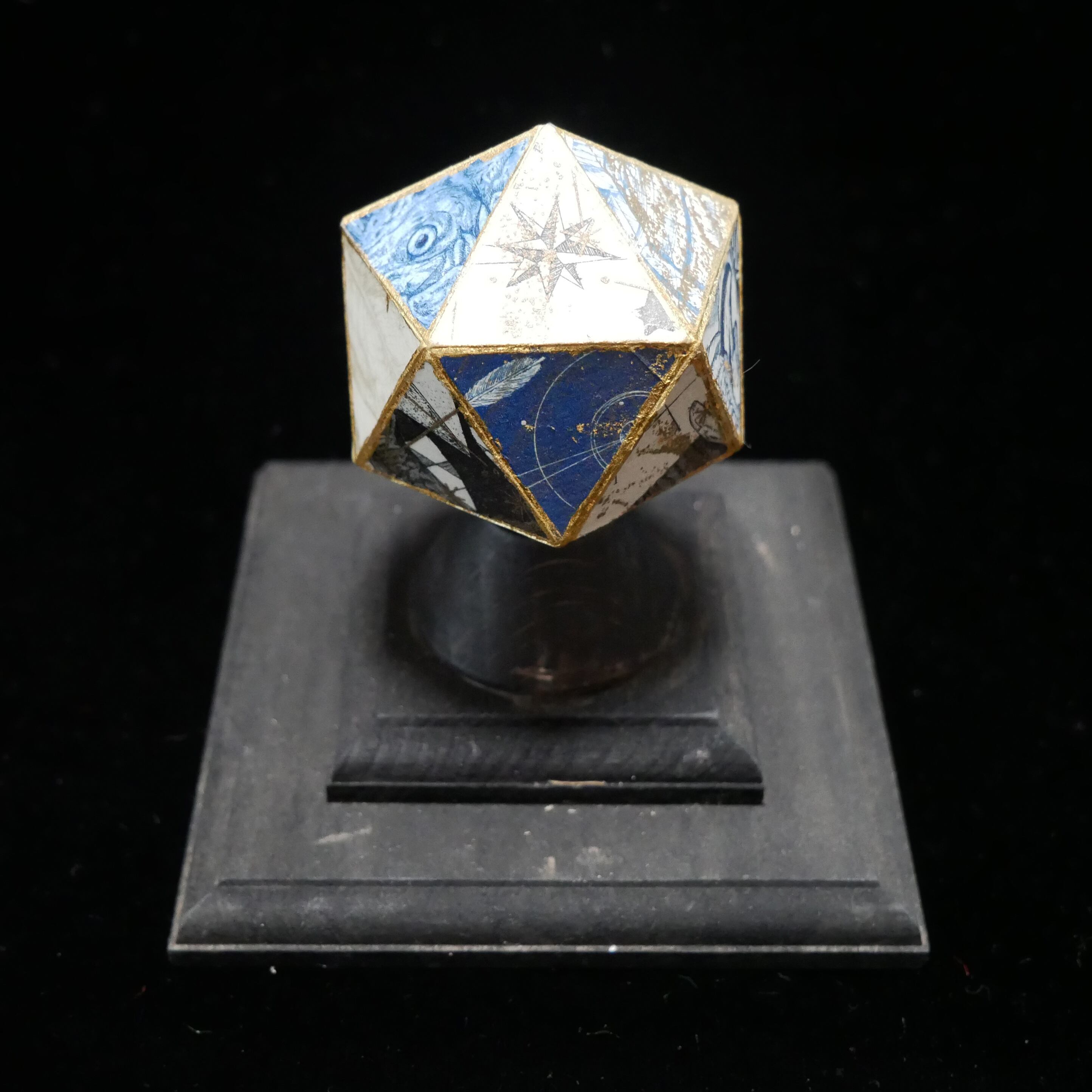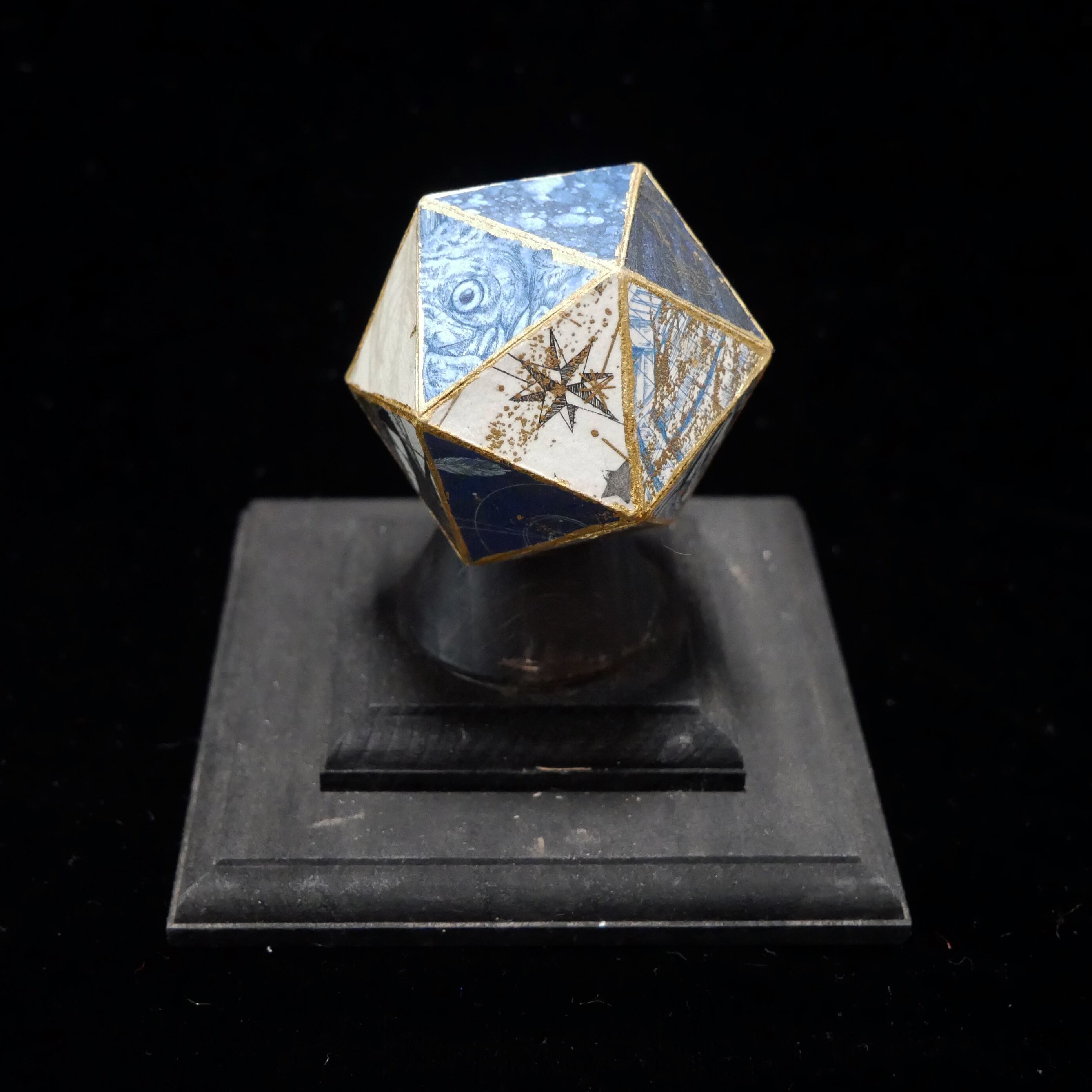 以前銅版画で制作した作品の一部を20面体に組み合わせ、新たな作品に仕上げました。