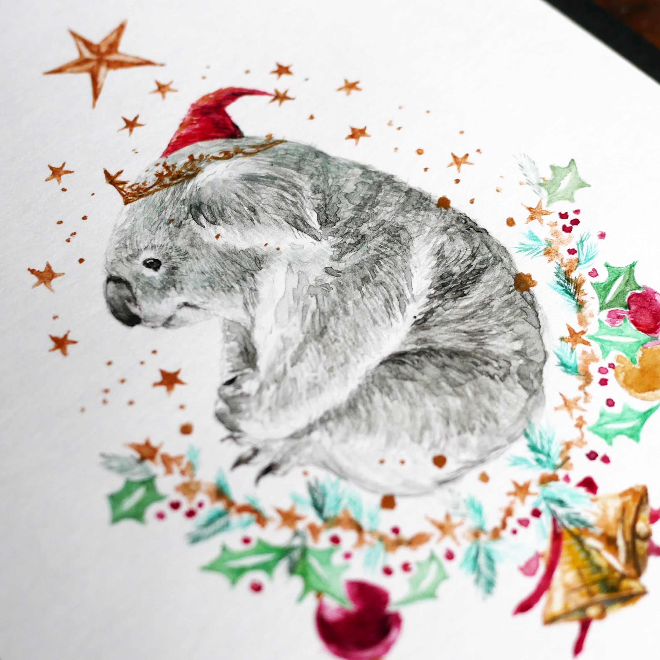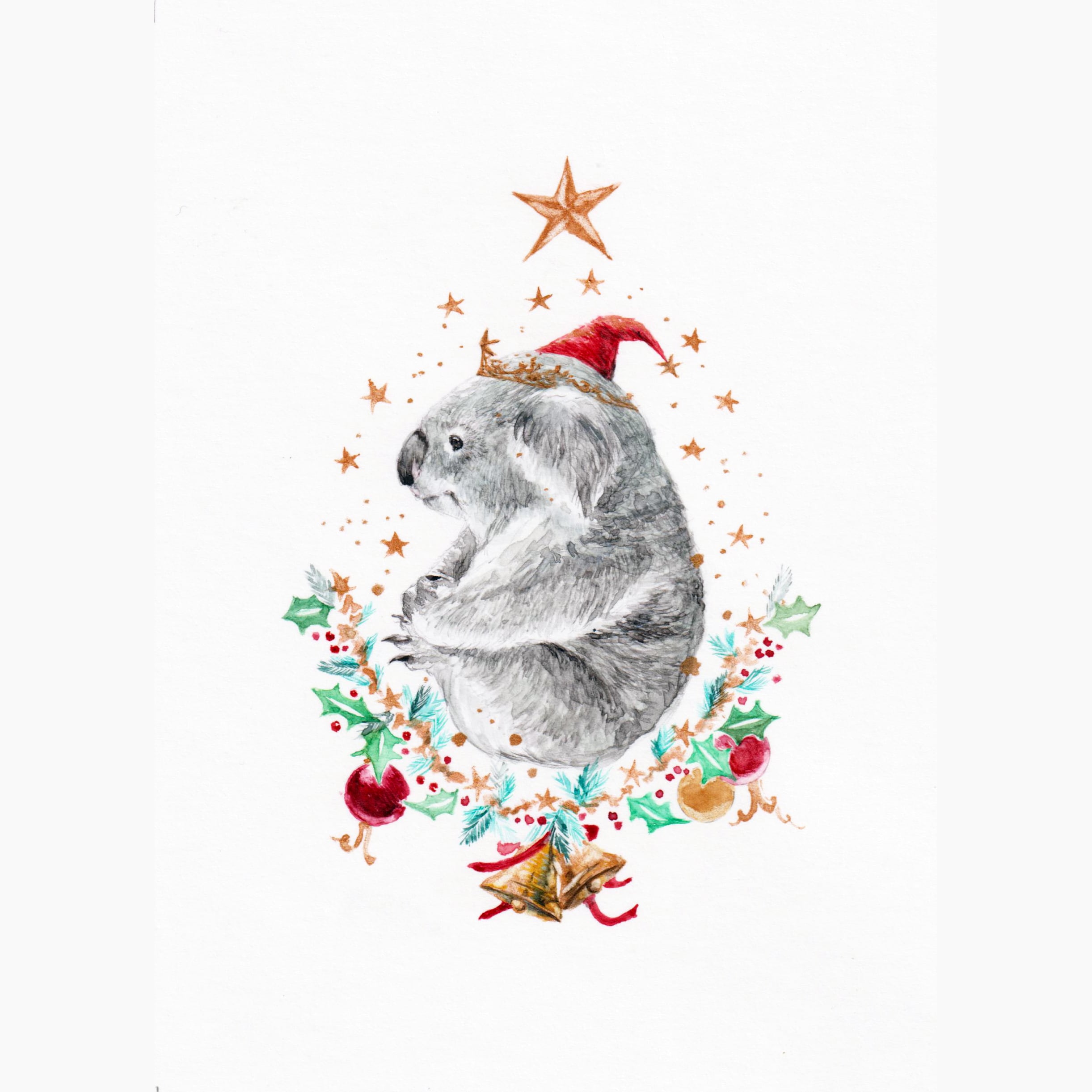 多摩動物園のコアラのあずまちゃんをモデルにクリスマス風に描いてみました。
