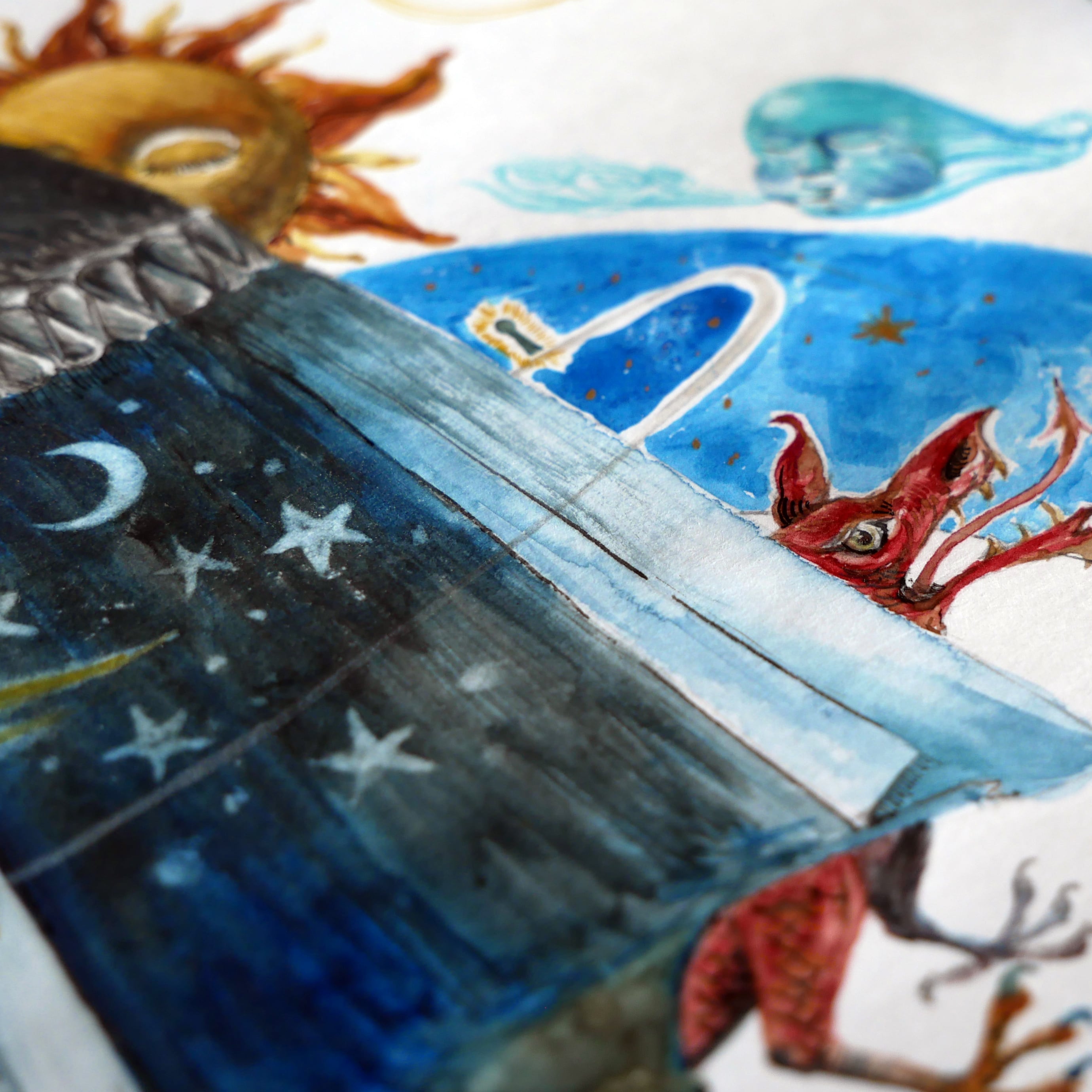 鉛筆、水彩のトーンや賑やかな画面をお楽しみいただければ幸いです。