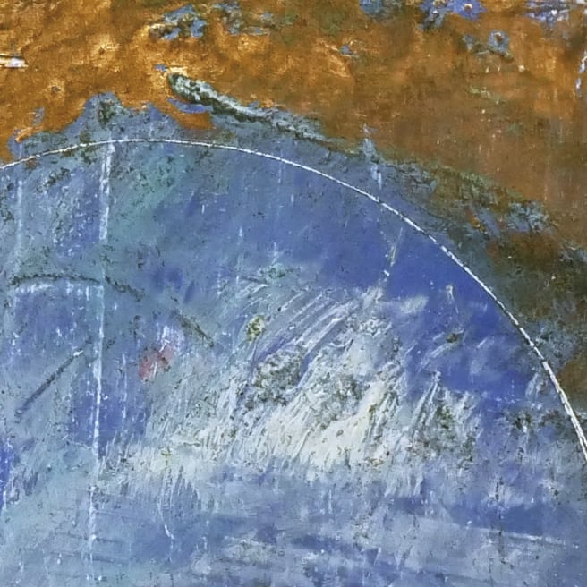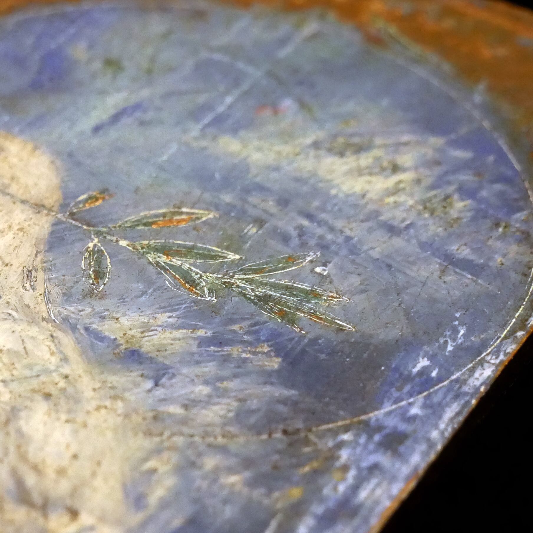 絵を描け上げてからヤスリで削って下層の絵具を出したり、ニードルで引っ掻いたりと古い風合いを目指しました。