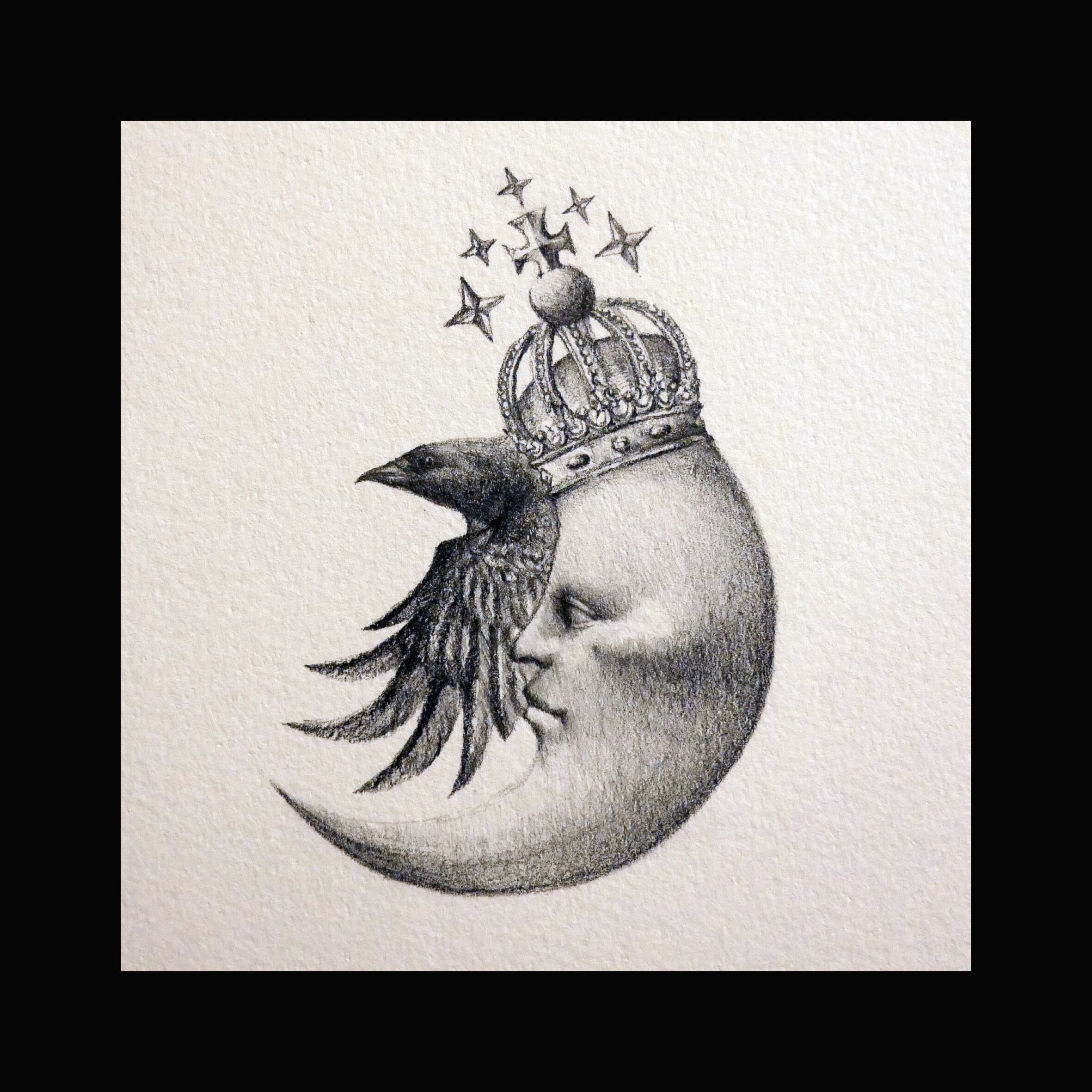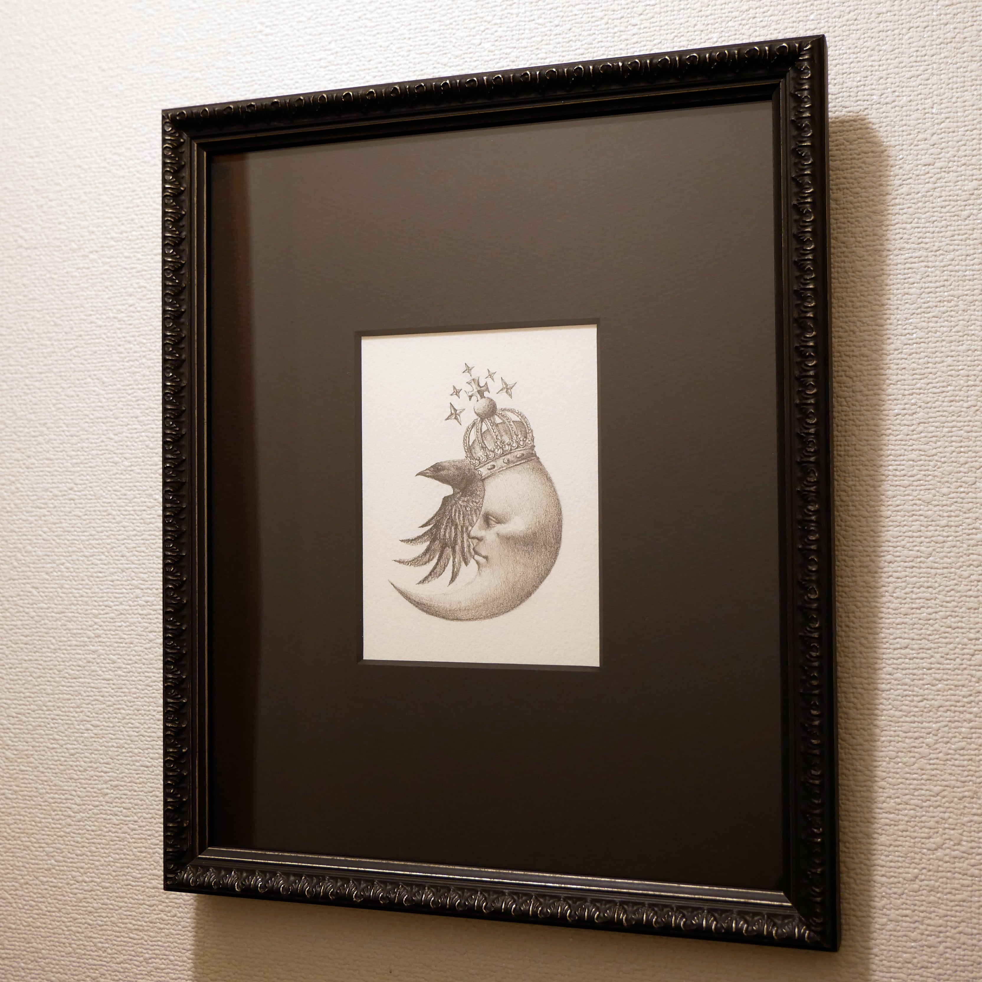 今作は象徴的な月のイメージと、共に夜空を飛ぶカラスを鉛筆で描きました。