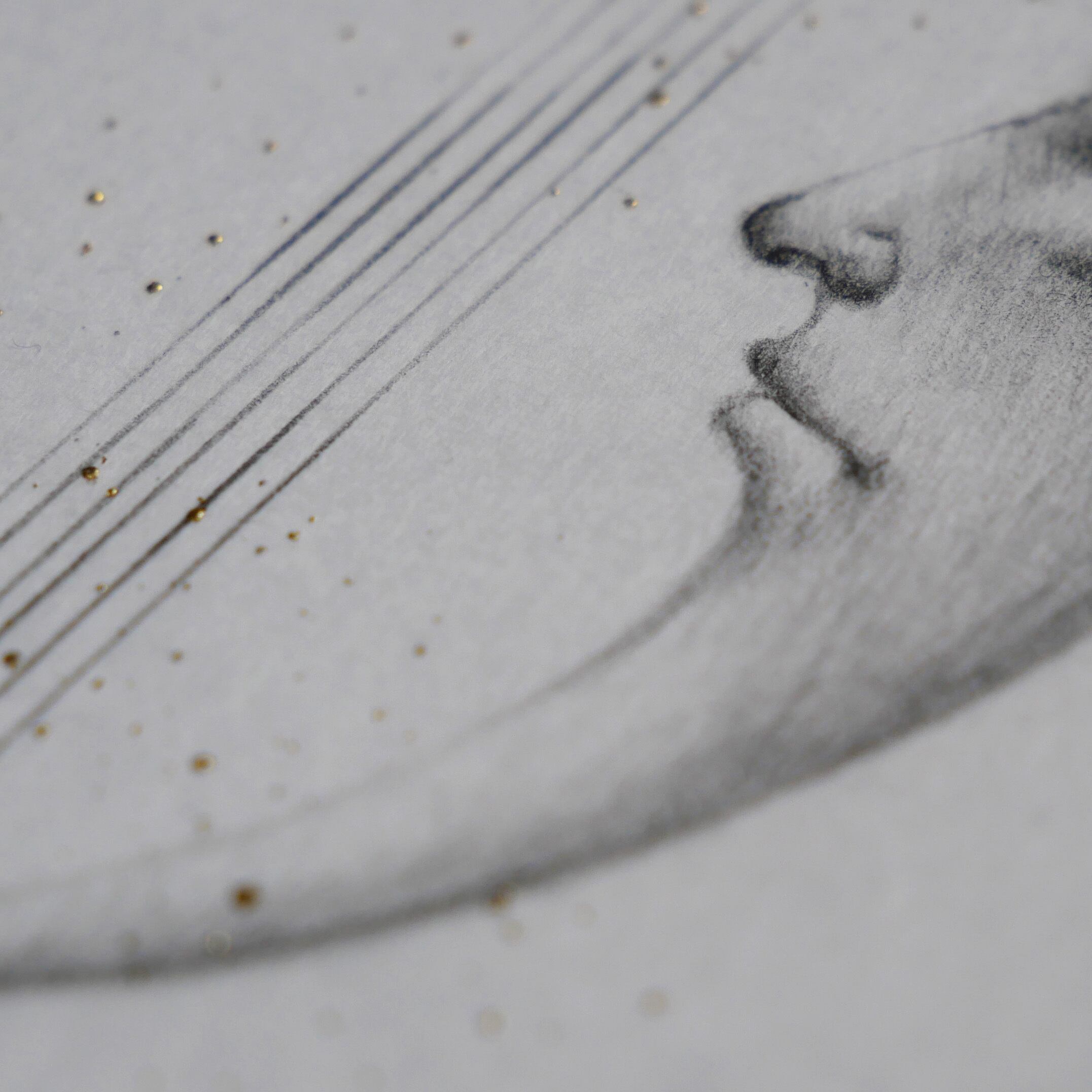 【技 法】ケント紙、鉛筆、金箔