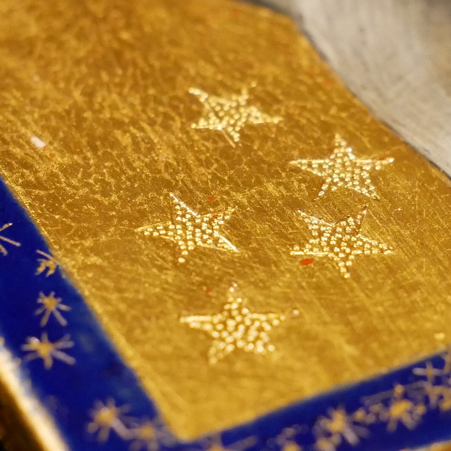 下部には星型で鏨を打ち光を乱反射させる事で立体的に模様を描いています。