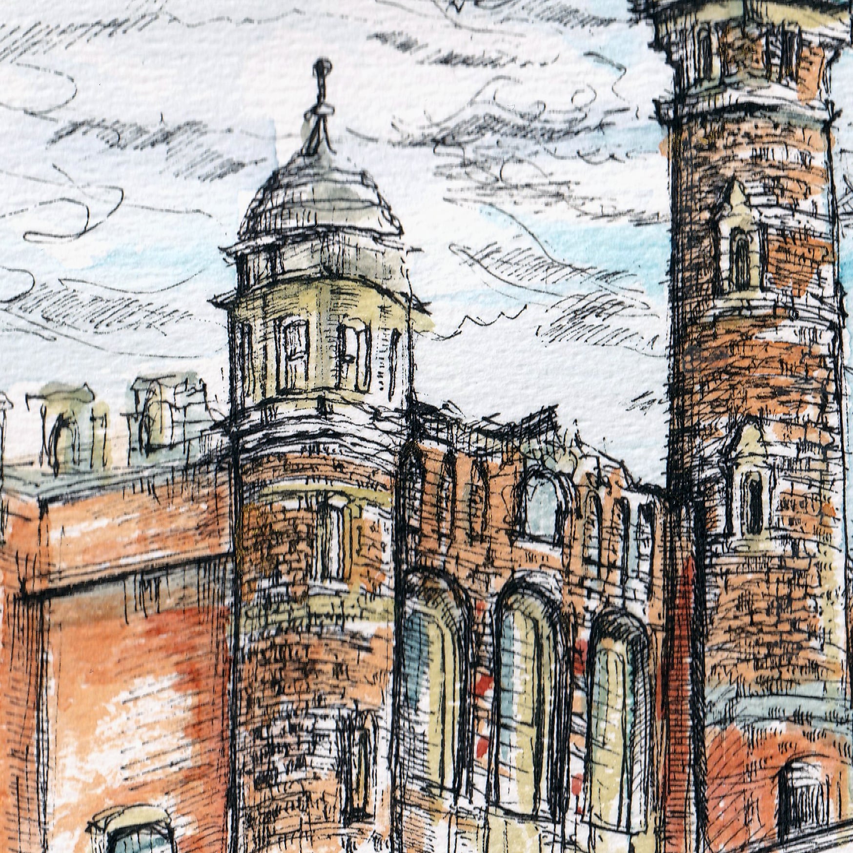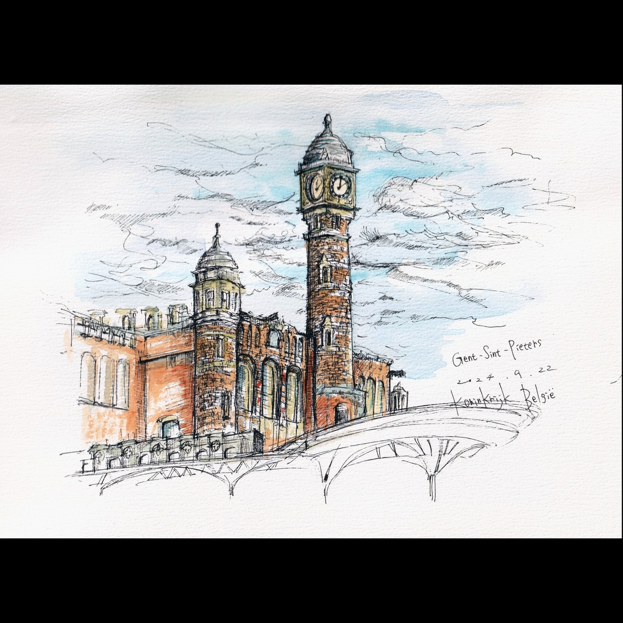 2024年に訪れたベルギーの風景よりゲント駅をスケッチしたものとなります。