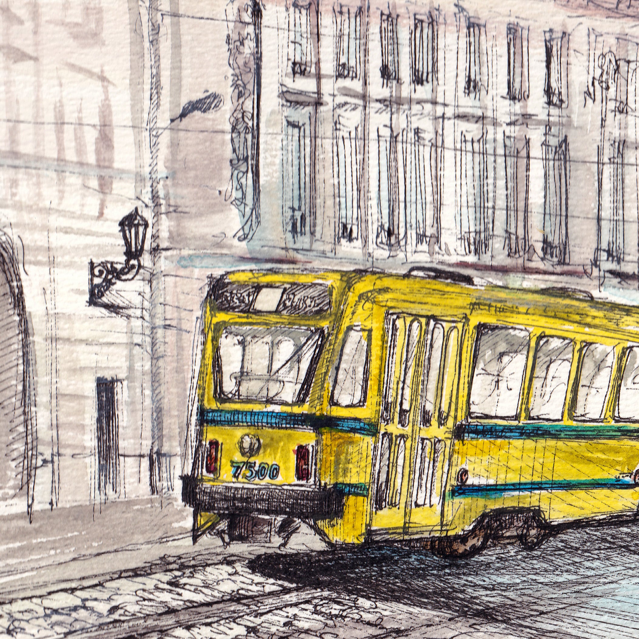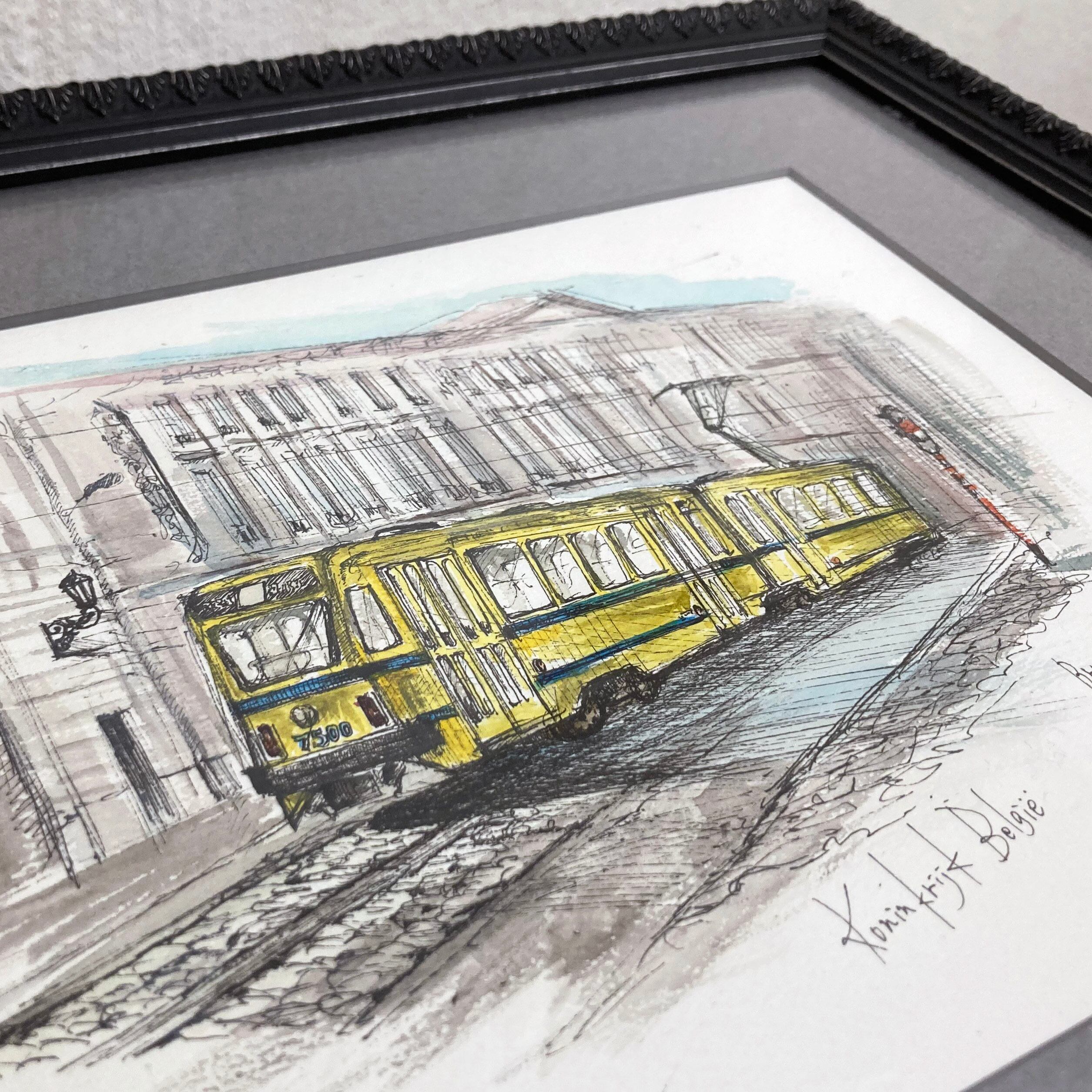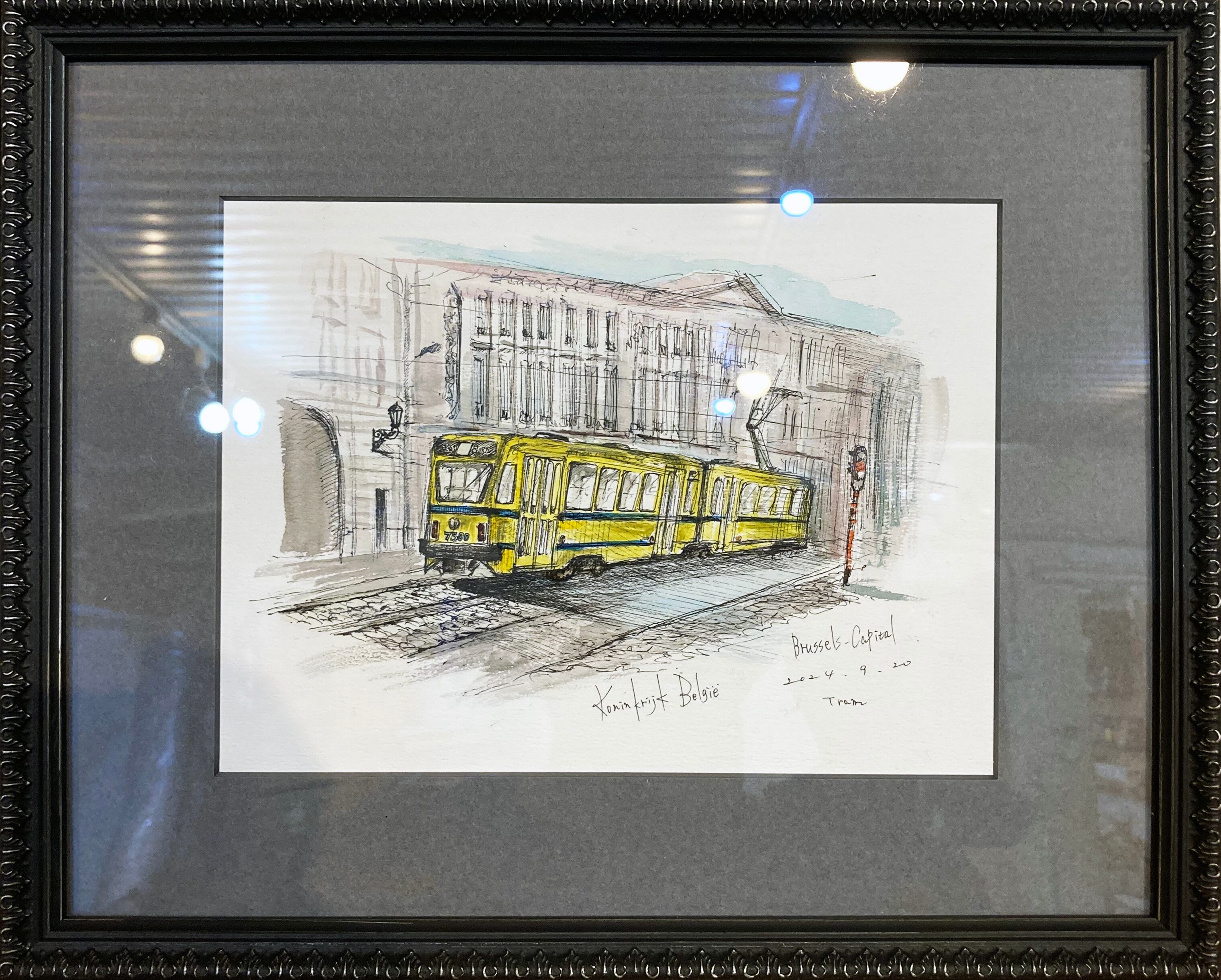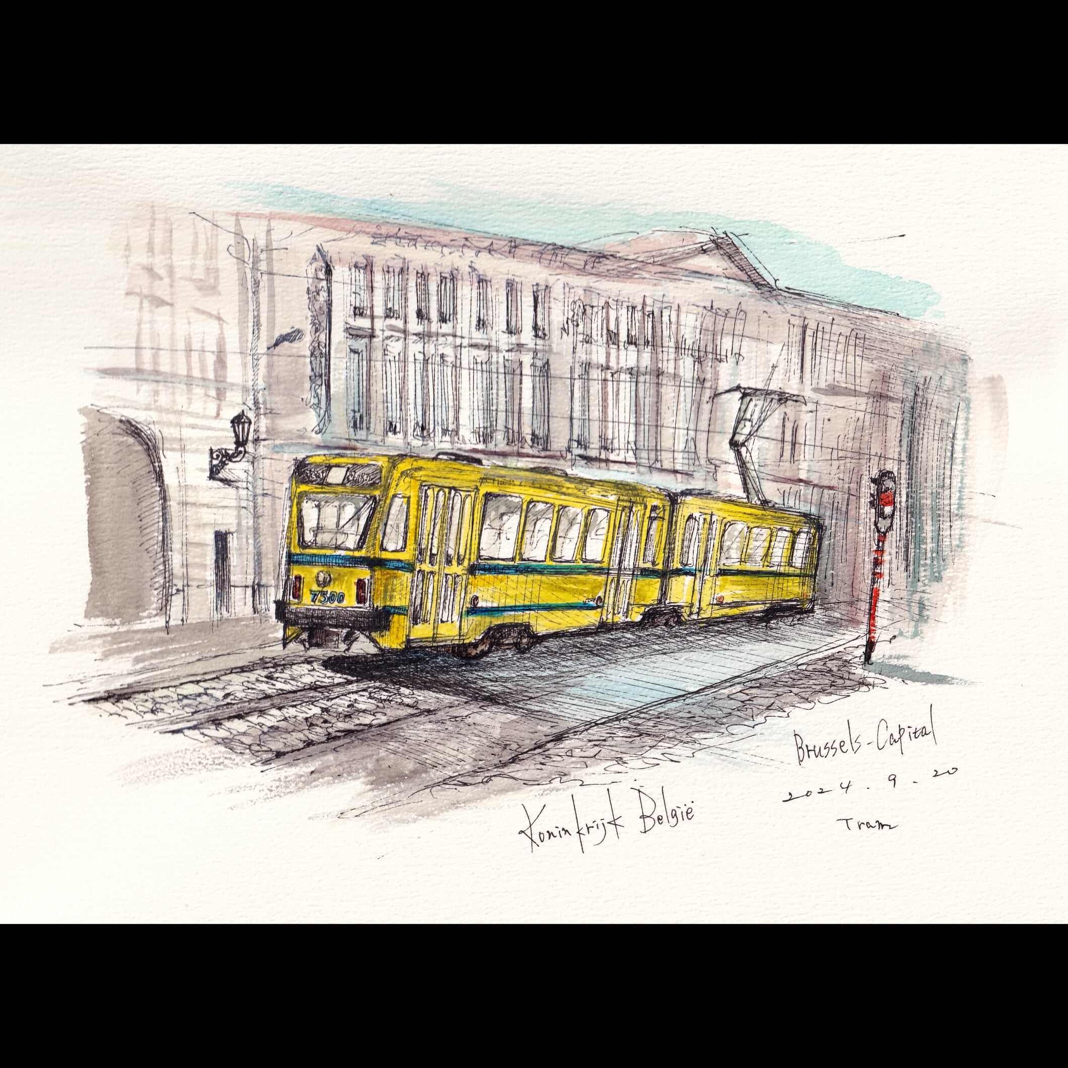2024年に訪れたベルギーの風景よりブリュッセルを走るトラムをスケッチしたものとなります。